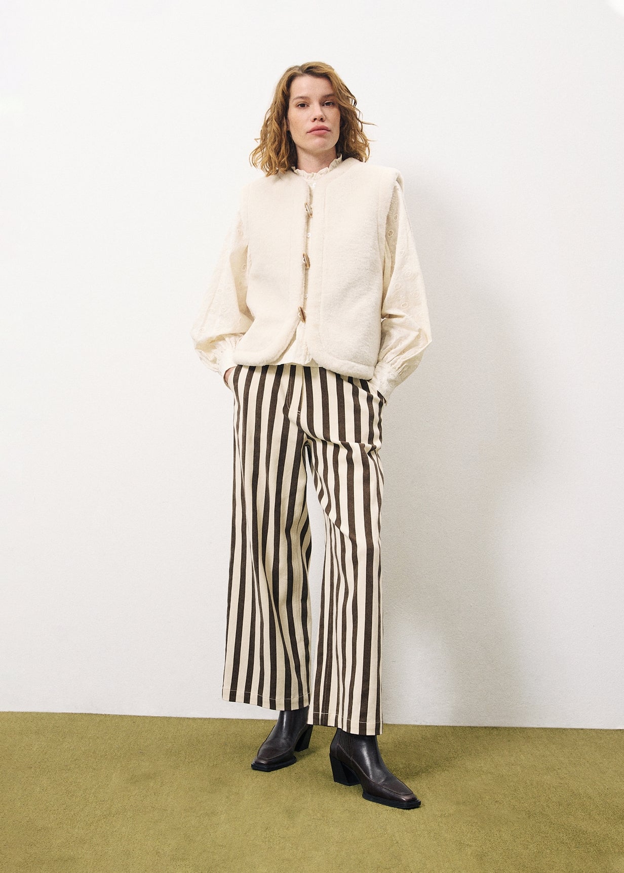 • Gilet double face à carreaux et fausse-fourrure